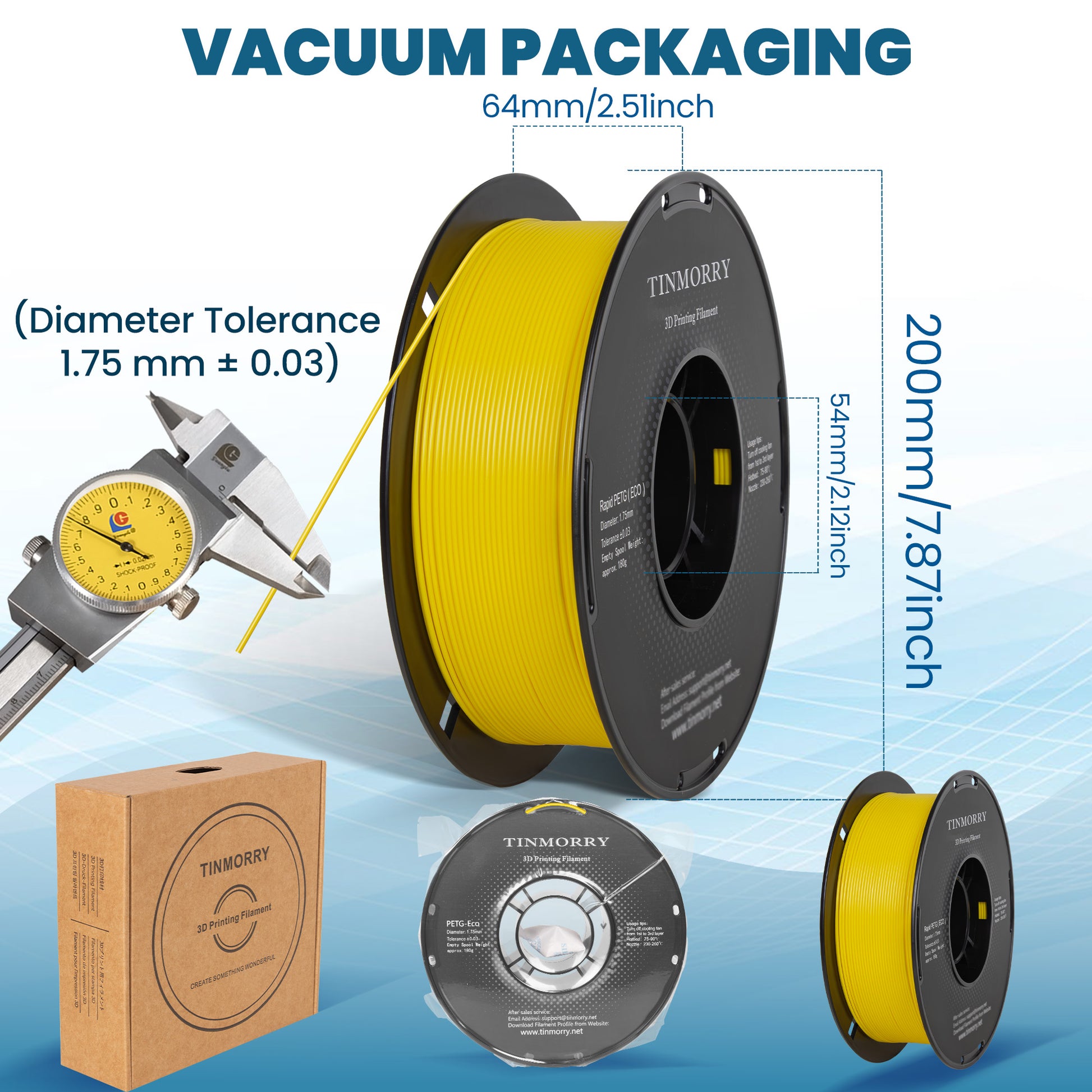 - Weniger anfällig für Verwicklungen und Verstopfungen: Mit einem Durchmesser von 1,75±0,03 mm ist das TINMORRY PETG-Eco Filament vollständig mechanisch gewickelt und wird manuell streng kontrolliert, um eine saubere Wicklung und eine einfache Zuführung zu gewährleisten. Die neue Formel verbessert auch die Druckqualität erheblich, indem sie das Verstopfen und Verklumpen der Düsen im Vergleich zu anderen PETG-Marken reduziert.