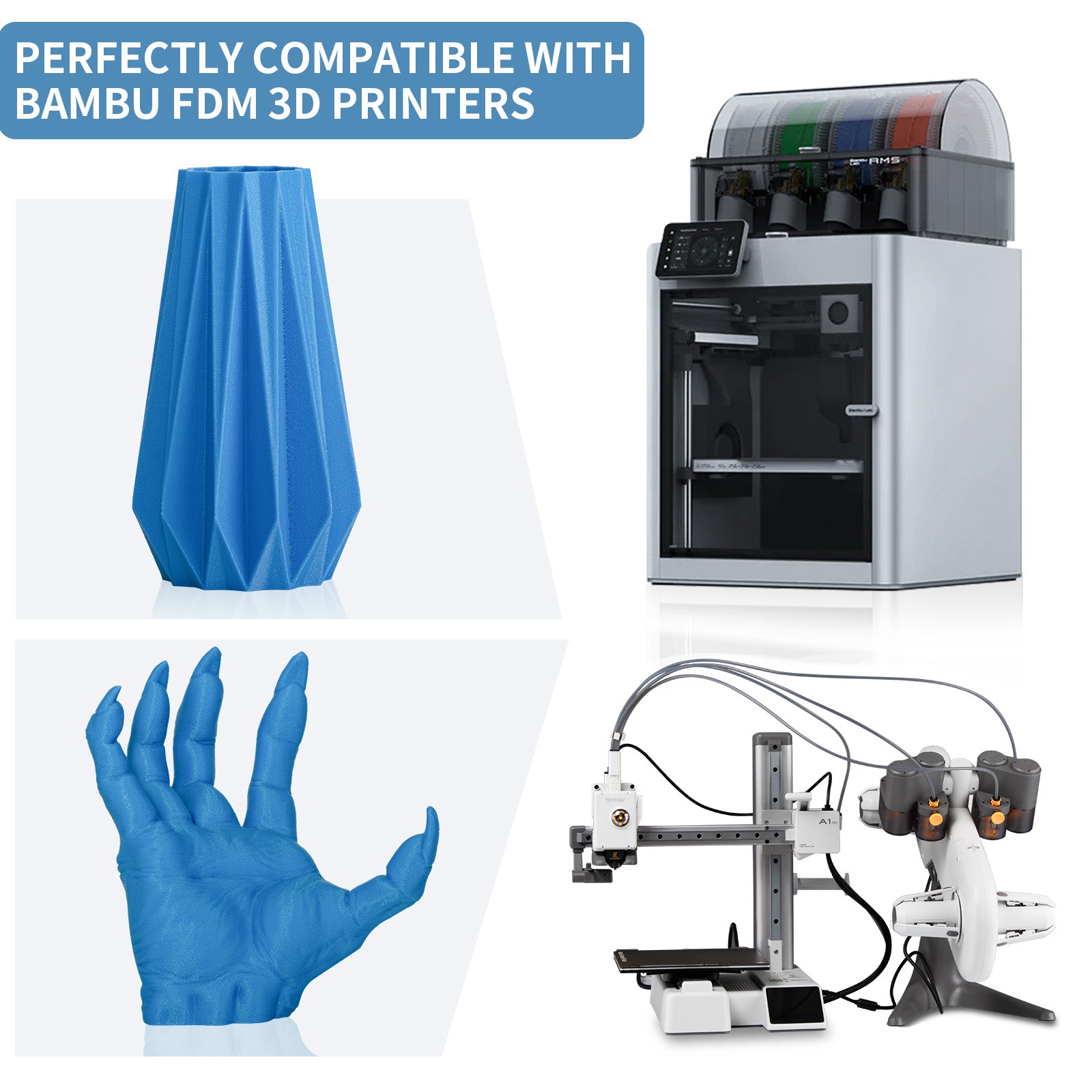 - Drucktipps: 1. Drucktemperatur: 260–290 °C, Betttemperatur: 80–110 °C, Druckgeschwindigkeit: <200 mm/s. 2. Bitte verwenden Sie verschleißfeste Stahldüsen (0,6 mm empfohlen) anstelle von gewöhnlichen Messingdüsen! 3. Perfekt kompatibel mit Bambu FDM 3D-Druckern.