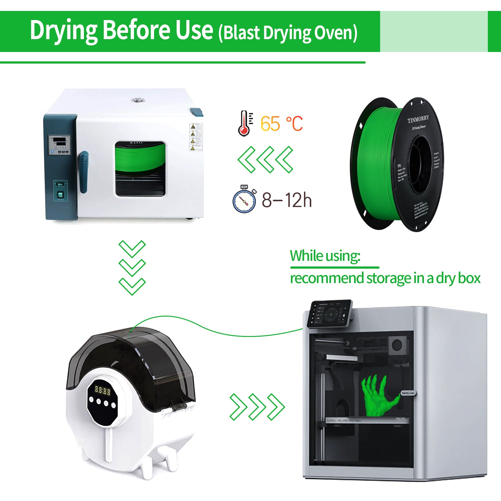 Mehrere Farben und breite Anwendung: Einer der Vorteile der Glasfaserverstärkung besteht darin, dass sich damit eine größere Farbpalette als mit Kohlefaser-PETG herstellen lässt. TINMORRY Glasfaser-PETG-Filament ist sehr robust und langlebig und verfügt über eine ausgezeichnete Hitzebeständigkeit. Dadurch eignet es sich für den Druck von Teilen mit hohen Temperatur- und Tragfähigkeitsanforderungen, wie z. B.: dekorative Automobilteile, Sportschutzausrüstung, elektrische Anwendungen, Außenanwendungen, Drohnenrahmen usw.