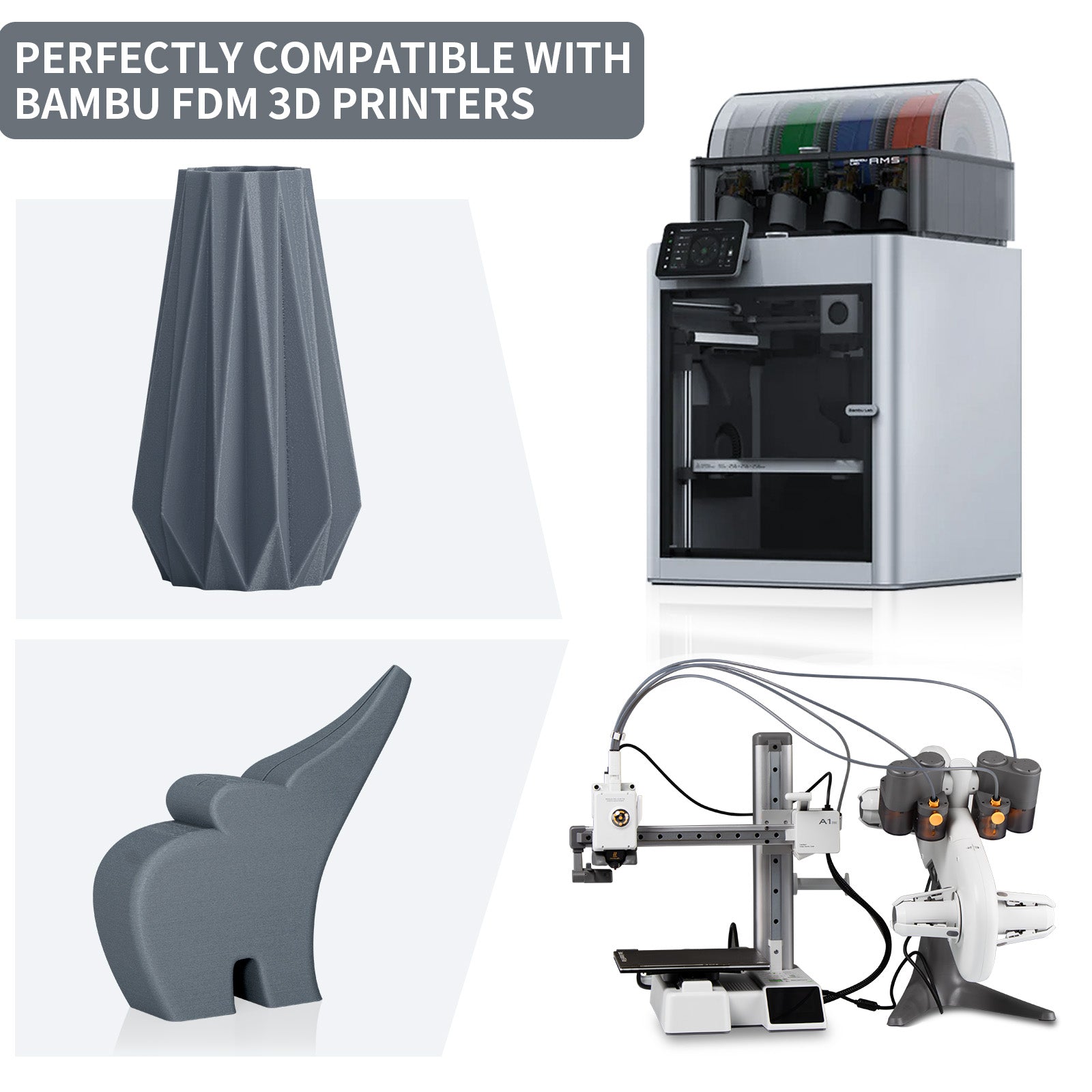 - Drucktipps: 1. Drucktemperatur: 260–290 °C, Betttemperatur: 80–110 °C, Druckgeschwindigkeit: <200 mm/s. 2. Bitte verwenden Sie verschleißfeste Stahldüsen (0,6 mm empfohlen) anstelle von gewöhnlichen Messingdüsen! 3. Perfekt kompatibel mit Bambu FDM 3D-Druckern.
