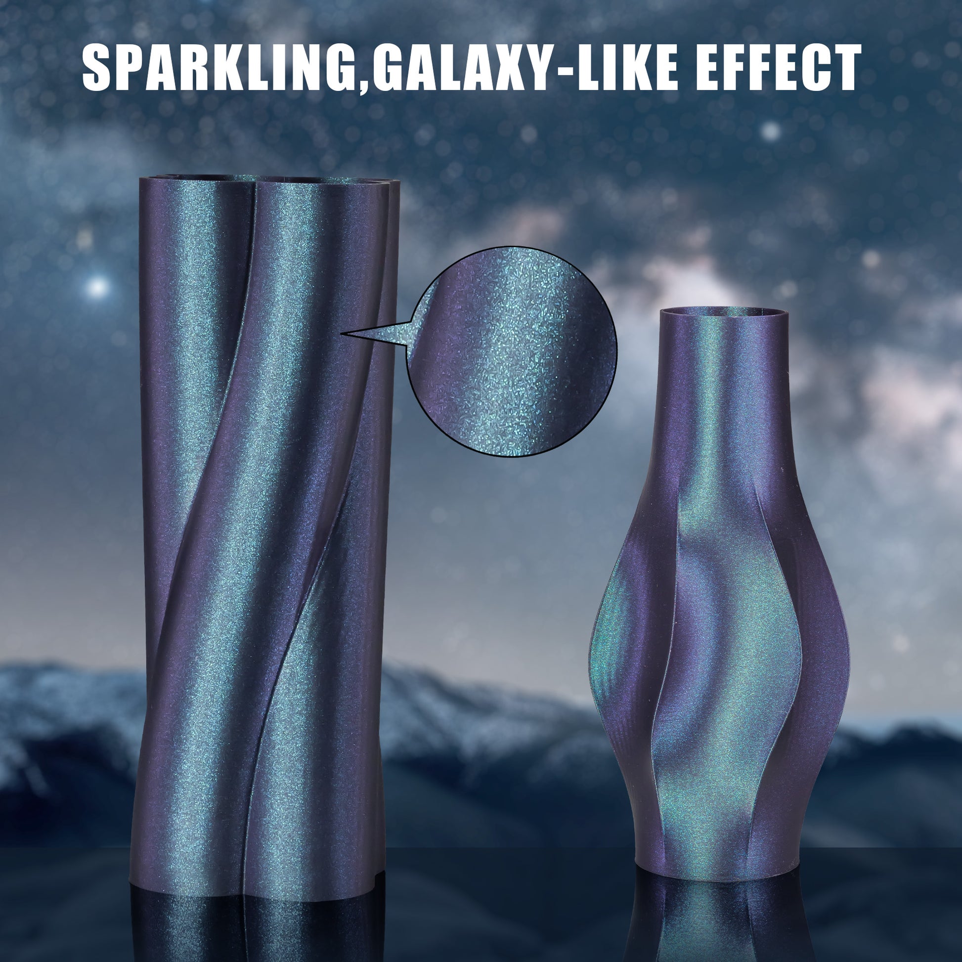 【Einzigartiger Galaxy-Effekt】 Die bedruckte Oberfläche weist eine schillernde, funkelnde Textur auf, die an den galaktischen Himmel erinnert und unter verschiedenen Beleuchtungswinkeln subtile visuelle Variationen zeigt. Dieser Effekt eignet sich besonders für dekorative Ornamente, künstlerische Modelle, personalisierte Accessoires und andere Projekte, die visuelle Highlights erfordern, und verleiht Ihren Drucken mühelos einen Hauch von Raffinesse und Designflair.