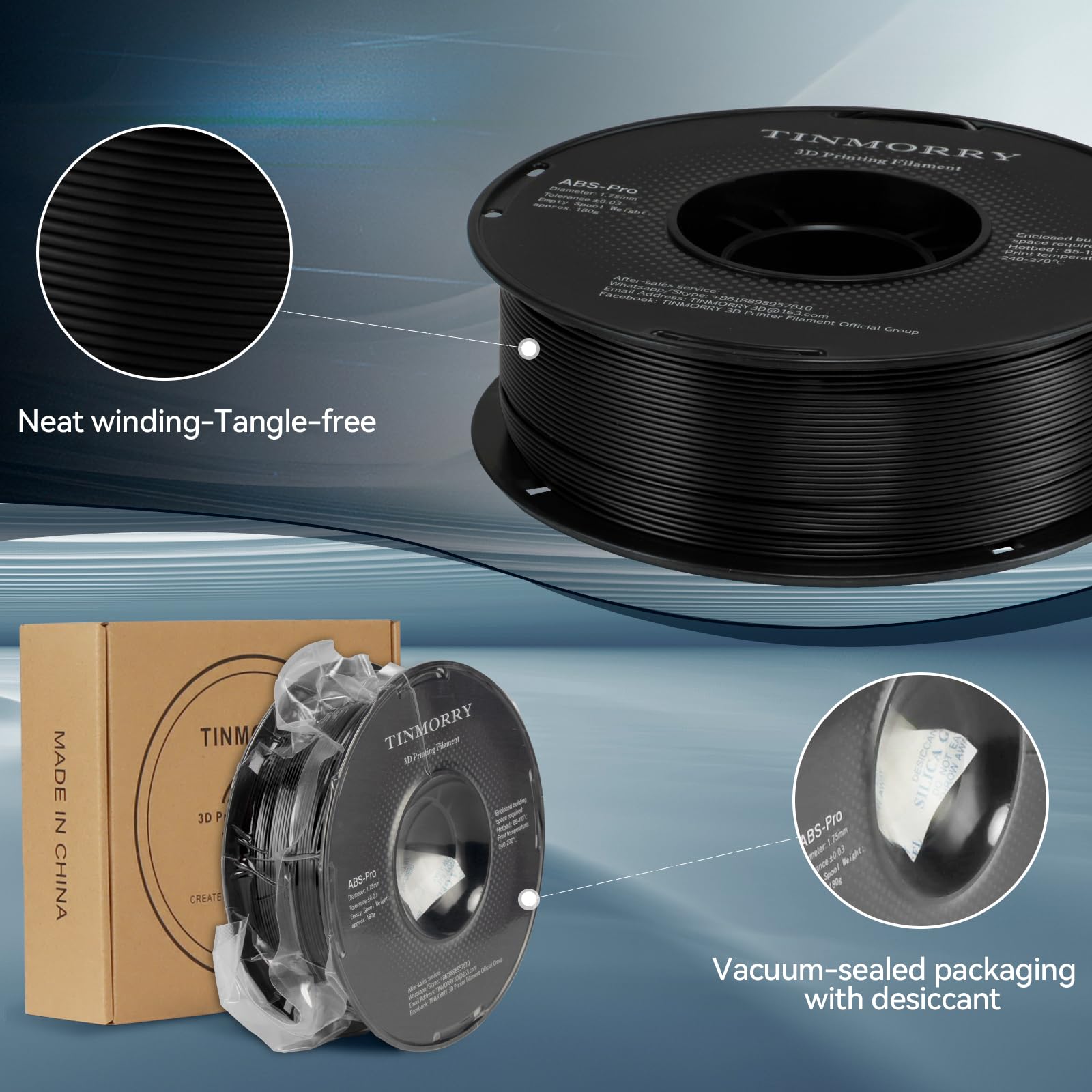 • For best print quality, an enclosed print space is recommended. If you have any questions while using TINMORRY ABS filament, please contact us to get filament profile or download from GitHub.