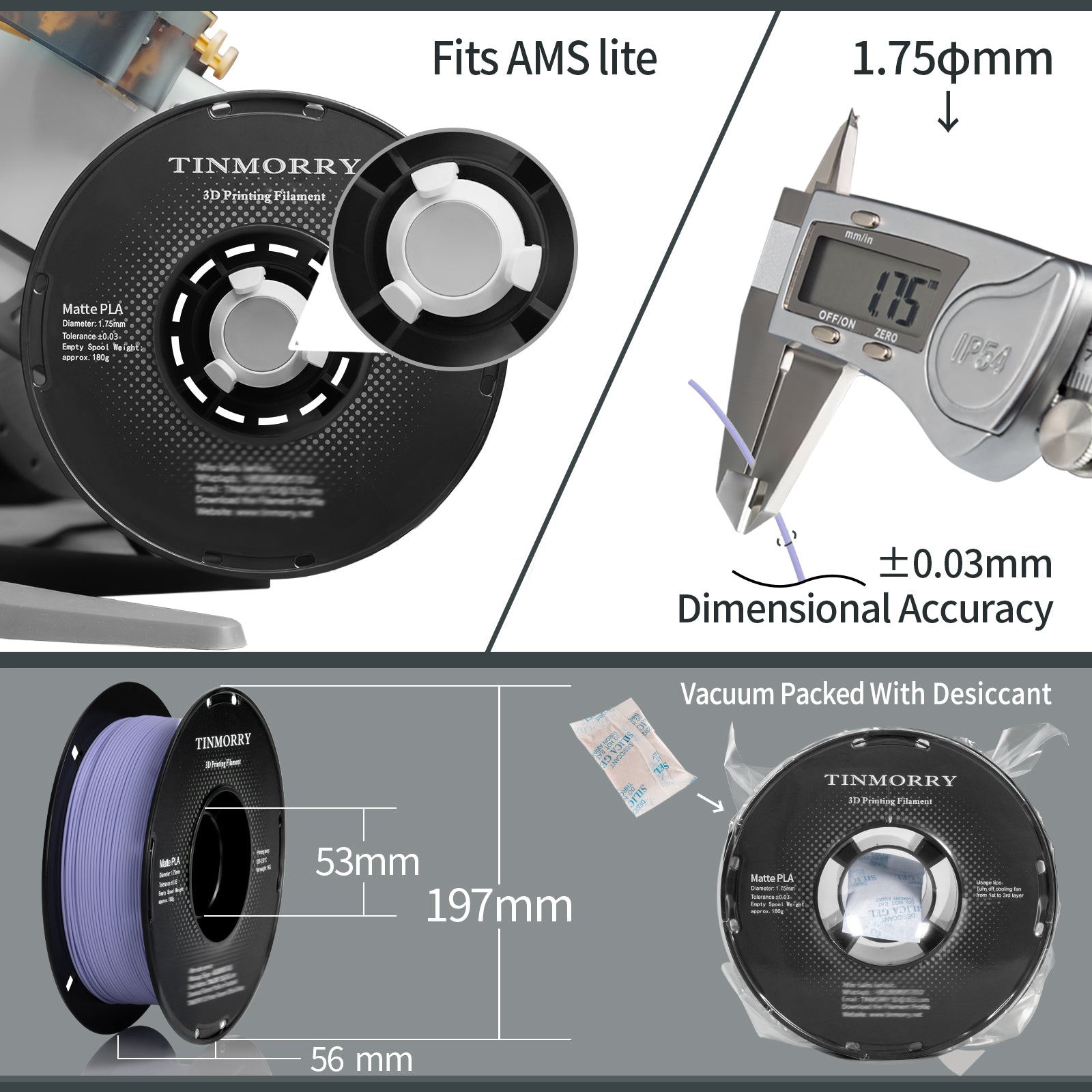 - Less Prone to Tangling and Clogging: With a diameter of 1.75±0.03mm, TINMORRY PLA Matte filaments are fully mechanically wound and rigorously manually inspected to ensure neat winding and easy feeding. The new formula also greatly improves printing quality by reducing nozzle clogging and clumping compared to other brands of PLA.