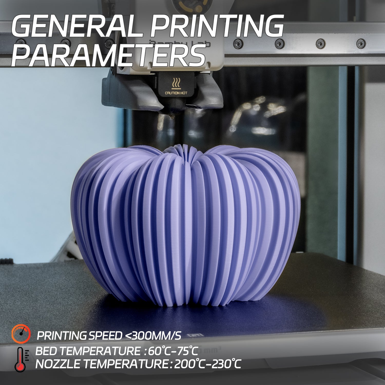 - Printing Tips: 1. Print Temperature: 200-230℃, Bed Temperature: 60-75℃, Print Speed: <200 mm/s. 2. Perfectly compatible with Bambu FDM 3D Printers.