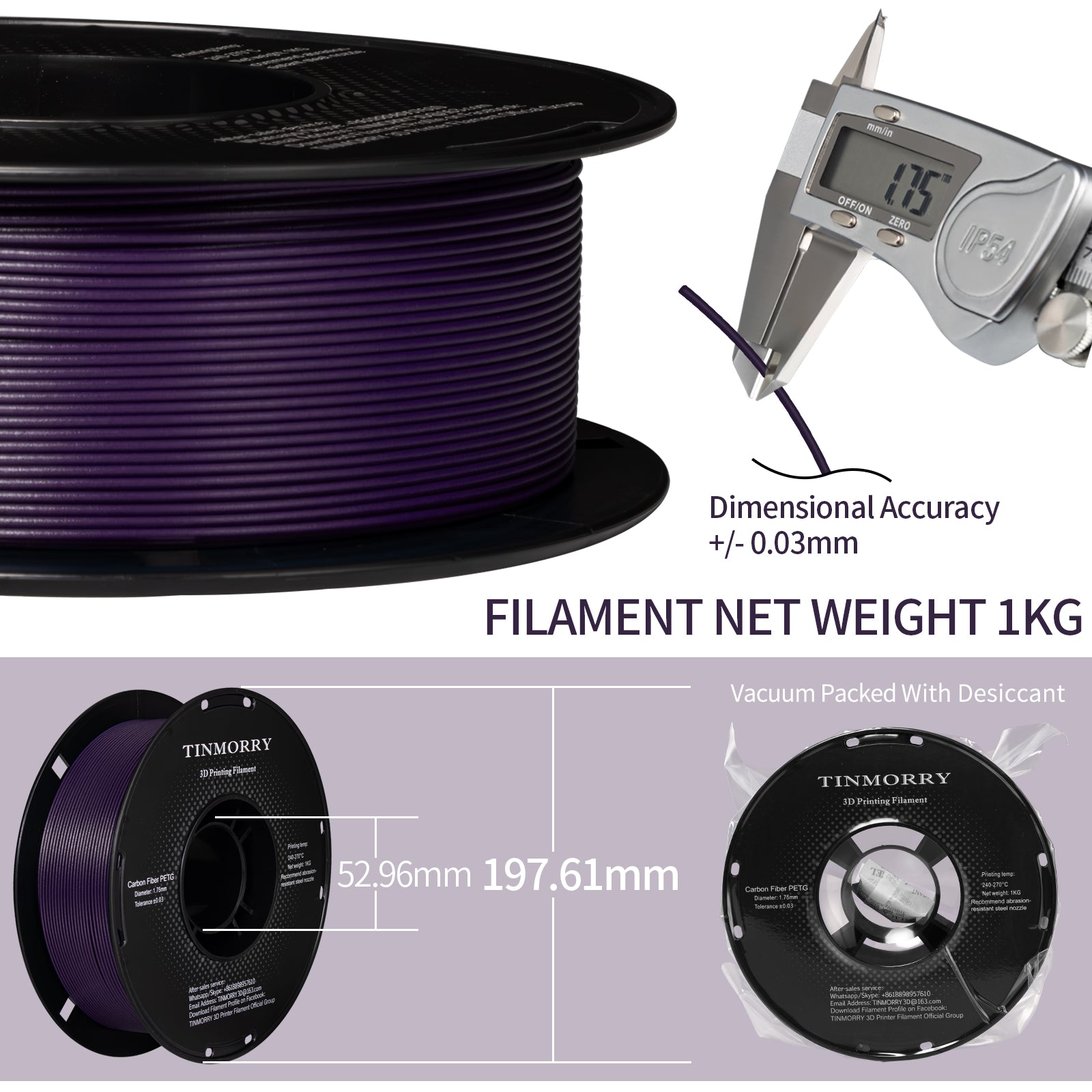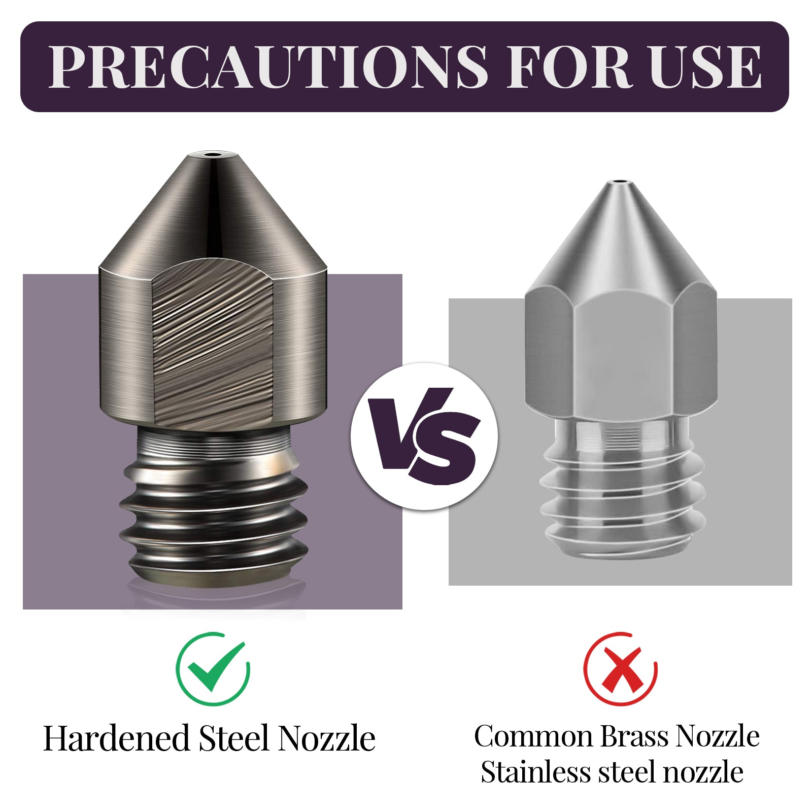 - Tips: 1. Dry before use for the highest print quality (65 °C, 8 h). Printing and Keeping Container's Humidity < 20% RH (Sealed, with Desiccant). 2. Do not use conventional brass nozzles! As the filament contains real carbon fibers, you have to use wear-resistant steel nozzles (≥ 0.4 mm; 0.6 mm is better). 3. To get stronger Z-adhesion, please set a higher infill density and use an enclosed printer; lower the fan percentage to avoid overcooling. 4. Containing 15% professionally processed short-cut carbon fiber masterbatch (NOT carbon fiber powder). Be sure to wear protective equipment when you cut, sand, grind, or saw something made with CF/GF filaments, as carbon fiber dust will be created!