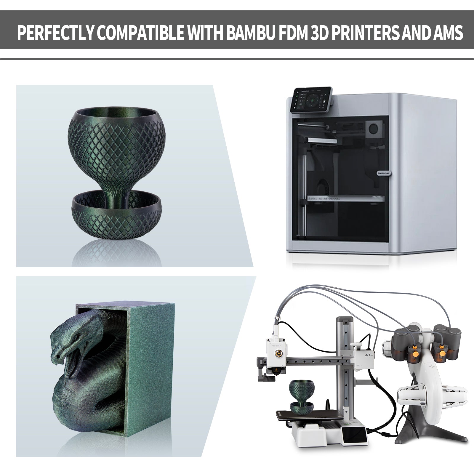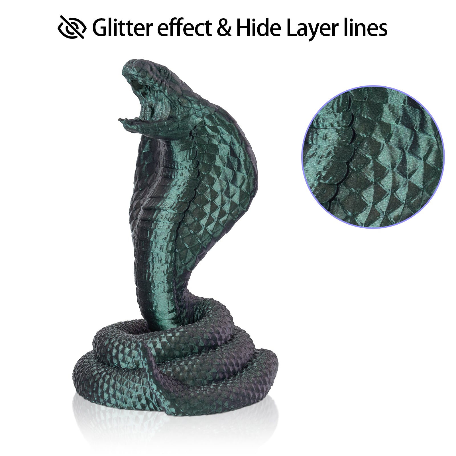 - Galaxy PETG Filament:The unique formula combines two colors on the same filament, resulting in two different color effects when viewed from different angles. In addition, it features a very bright glitter effect under strong light, making it ideal for printing decorations or artworks that require high appearance.