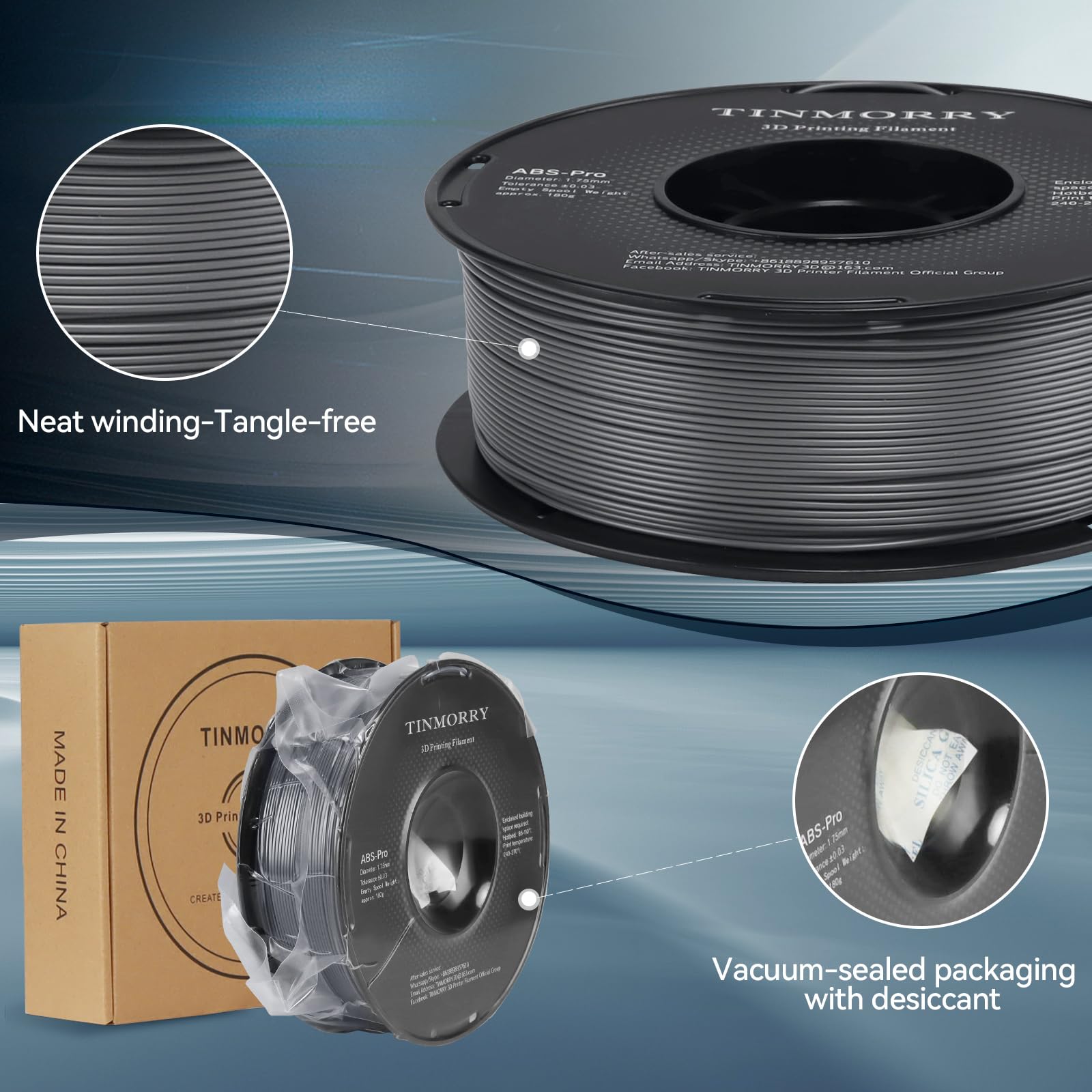 - No Tangle and No clogging: ABS (pro) 3d filament do not tangle or clog during printing, ensuring a good printing result. In addition, our ABS filament 1.75 mm is packed in a vacuum sealed and resealable bag filled with a desiccant to ensure the best printing performance of the filament.