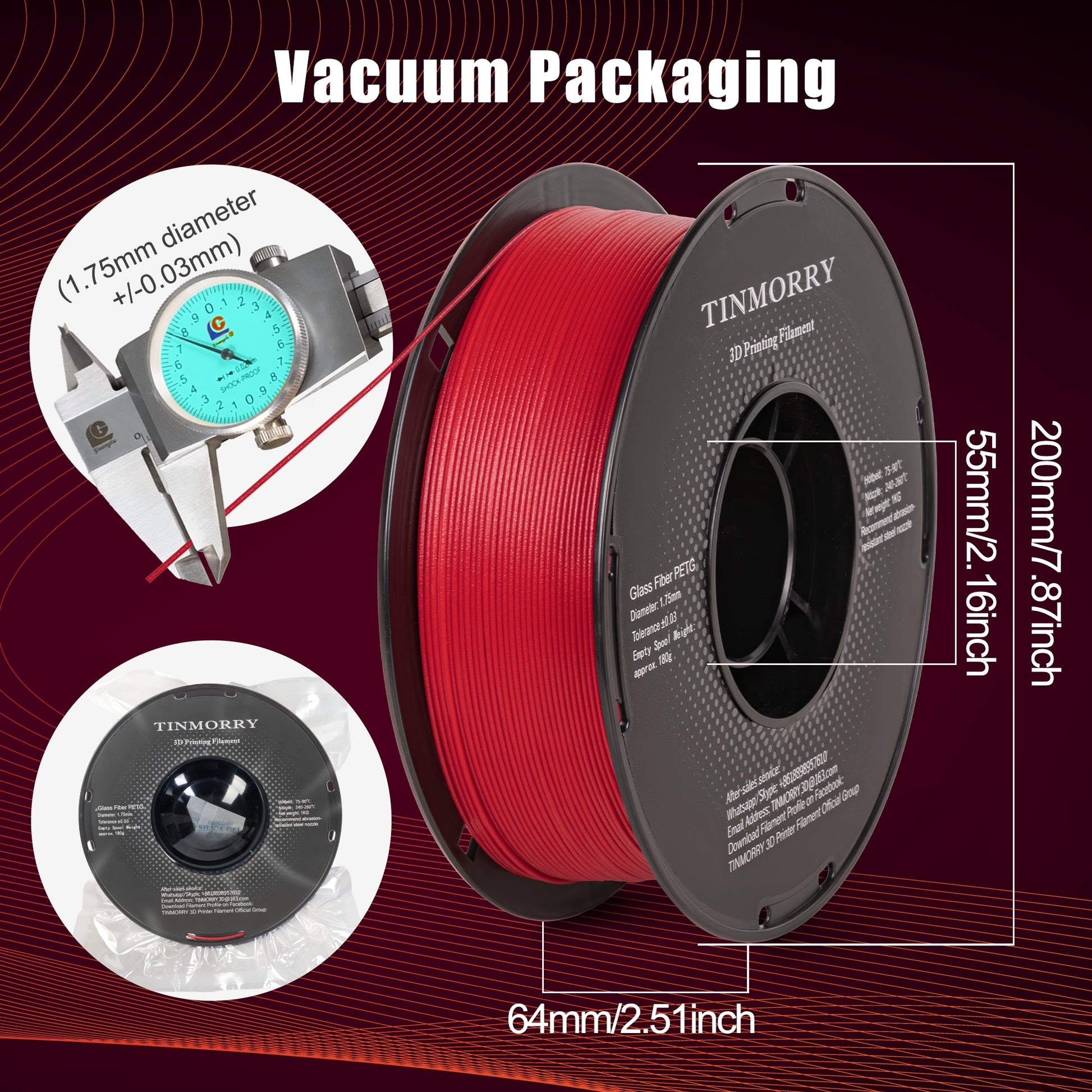 - Dimensional Stability & Premium Surface: With a dimensional accuracy of 1.75 ±0.03mm, TINMORRY PETG-GF 3D printing filament has a glass fiber reinforcement that minimises warpage and shrinkage compared to regular PETG filament, providing unparalleled dimensional stability while giving the print a frosted surface texture.