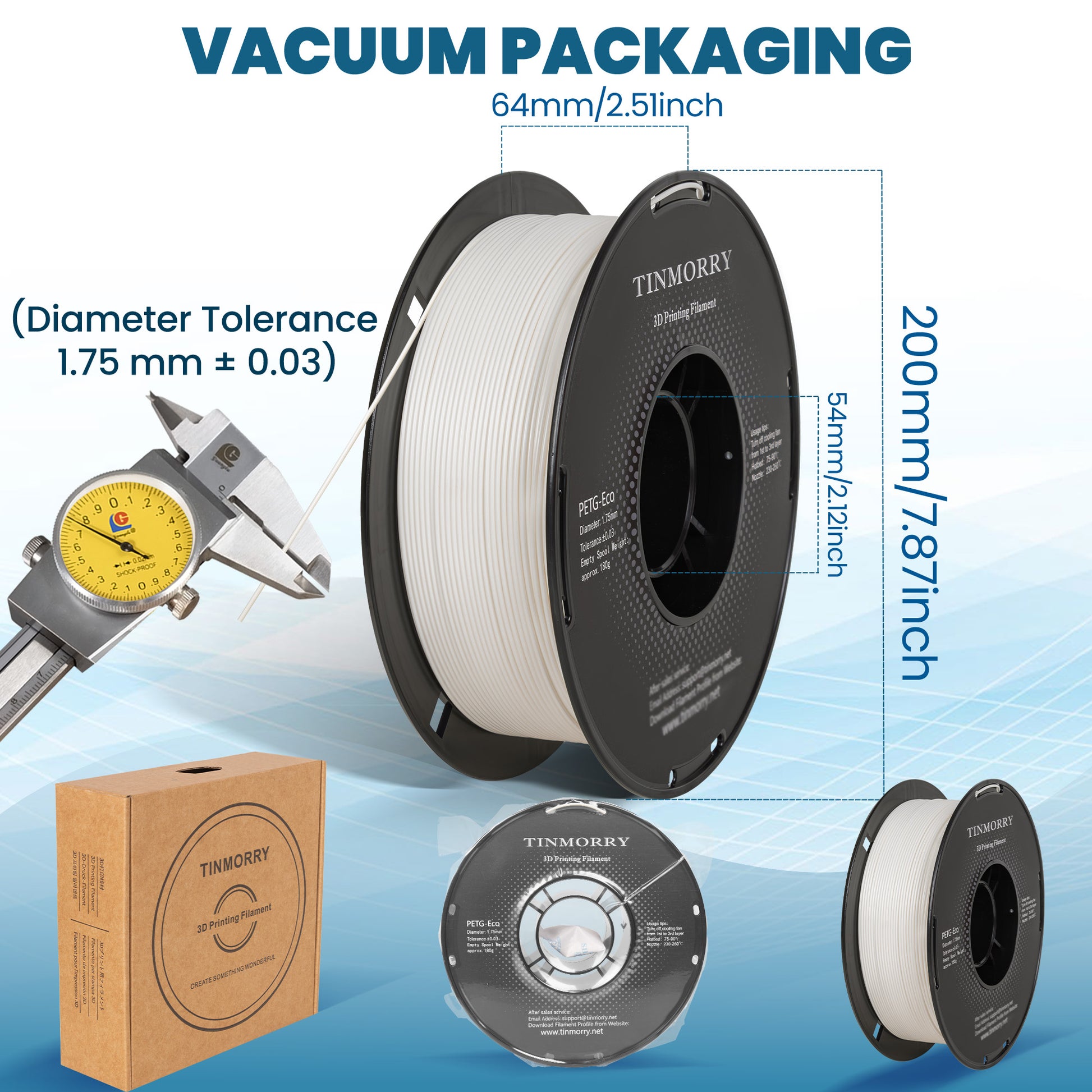 - 高い靭性と優れた耐熱性: TINMORRY PETG-Eco 3D プリンター フィラメントは、高い靭性、低収縮、優れた層結合という利点があります。PLA よりも堅牢で耐久性があり、幅広い用途に使用できます。